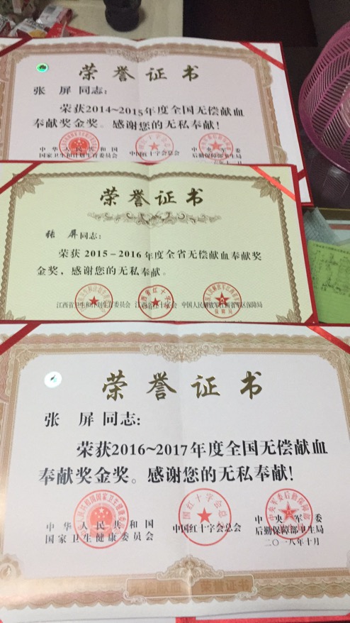 据张屏介绍,坚持无偿献血给她带来了很多收获和快乐。随着献血次数的增多,身边志同道合的朋友越来越多,只要有用血需求,她都会义不容辞地去献血给有需要的人。2016年,张屏加入江西省无偿献血志愿者协会,只要有时间就会到献血屋做志愿服务,已经累计200多个小时。