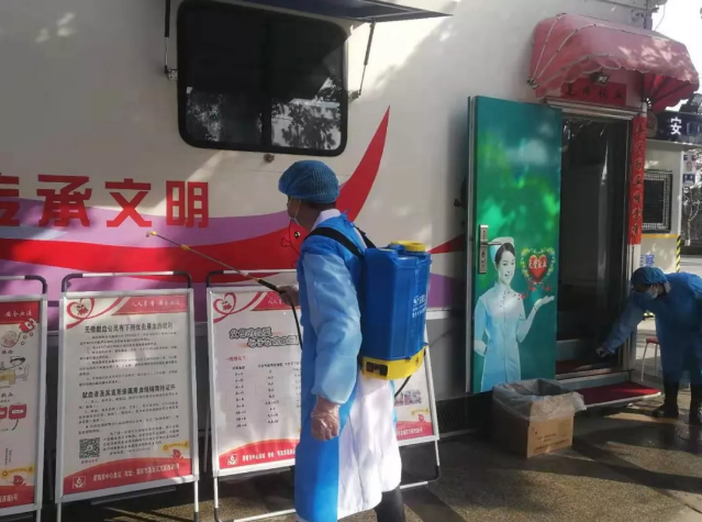2月2日,为确保献血者献血安全,渭南市中心血站启动“特殊时期”应急预案:对采血人员进行防疫知识培训,严格按照国家消毒标准,增加献血场所的消毒频次。对采血现场所有仪器定时定点擦拭消毒、一次性耗材定点处置,提升对献血者体检和工作人员监测标准,献血前增加手消毒、戴口罩等环节,对献血者加强献血前疫情排查, 在“抗击疫情”和“献血救人”之间,建立科学监测、安全防控、措施得当的工作机制,圆满完成“特殊时期”临床用血供应。