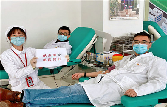 上海市血液中心第四党支部书记和副书记结伴献血