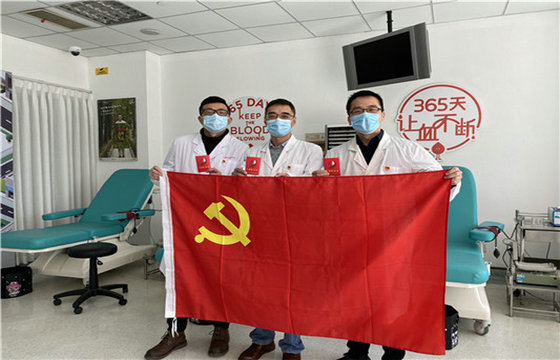 2月1日,上海市血液中心第四党支部书记龚裕春和副书记黄晨佳利用工作间隙来到2楼采血室,分别捐献全血400毫升和200毫升,用实际行动为亟待拯救的患者送上生命的礼物。