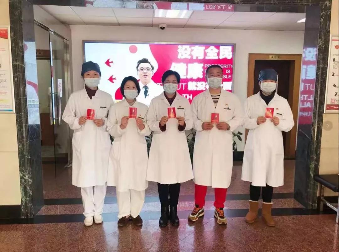 2月2日上午,在党支部书记陆萍的带领下,嘉定区血站多名党员和入党积极分子率先垂范,一起撸起袖子,献血战“疫”。