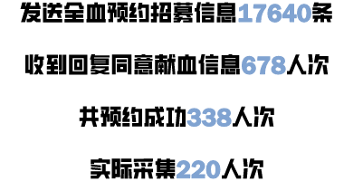 有计划、分批次向符合条件的本地献血者发送招募短信、拨打电话,精准招募、开拓血源。1月29日街头献血点全面开放以来,截至2月3日,共