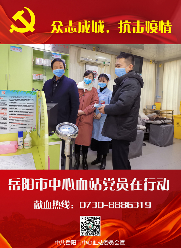 当前,新型冠状病毒感染的肺炎疫情防控和无偿献血工作处于关键时期。为巩固“不忘初心、牢记使命”主题教育成果,发挥党员干部在疫情防控与采供血工作中的先锋模范作用,展现岳阳血站党员干部的良好形象,特向全体党员发出以下倡议: