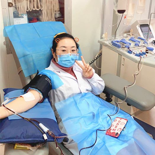 “虽然不是党员,但我是一名一线血液工作者,在非常时期,作为血站职工,更应该站出来,为抗击疫情出自己的一份力” 献血服务二科职工秦怡正在血小板捐献的位置上,这已经是她今年以来第3次捐献(机采血小板捐献间隔期为两周)血小板了,3次累计捐献6个治疗量。除了秦怡以外,今年以来捐献3次的还有检验科长钟江,他是全国无偿献血奉献奖金奖的获得者,也是中心机采大厅的“熟面孔”,只要无特殊情况,只要间隔期一到,他的身影就会准时出现在机采血小板的位置上。