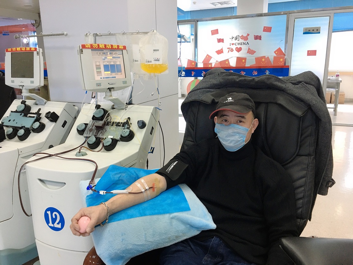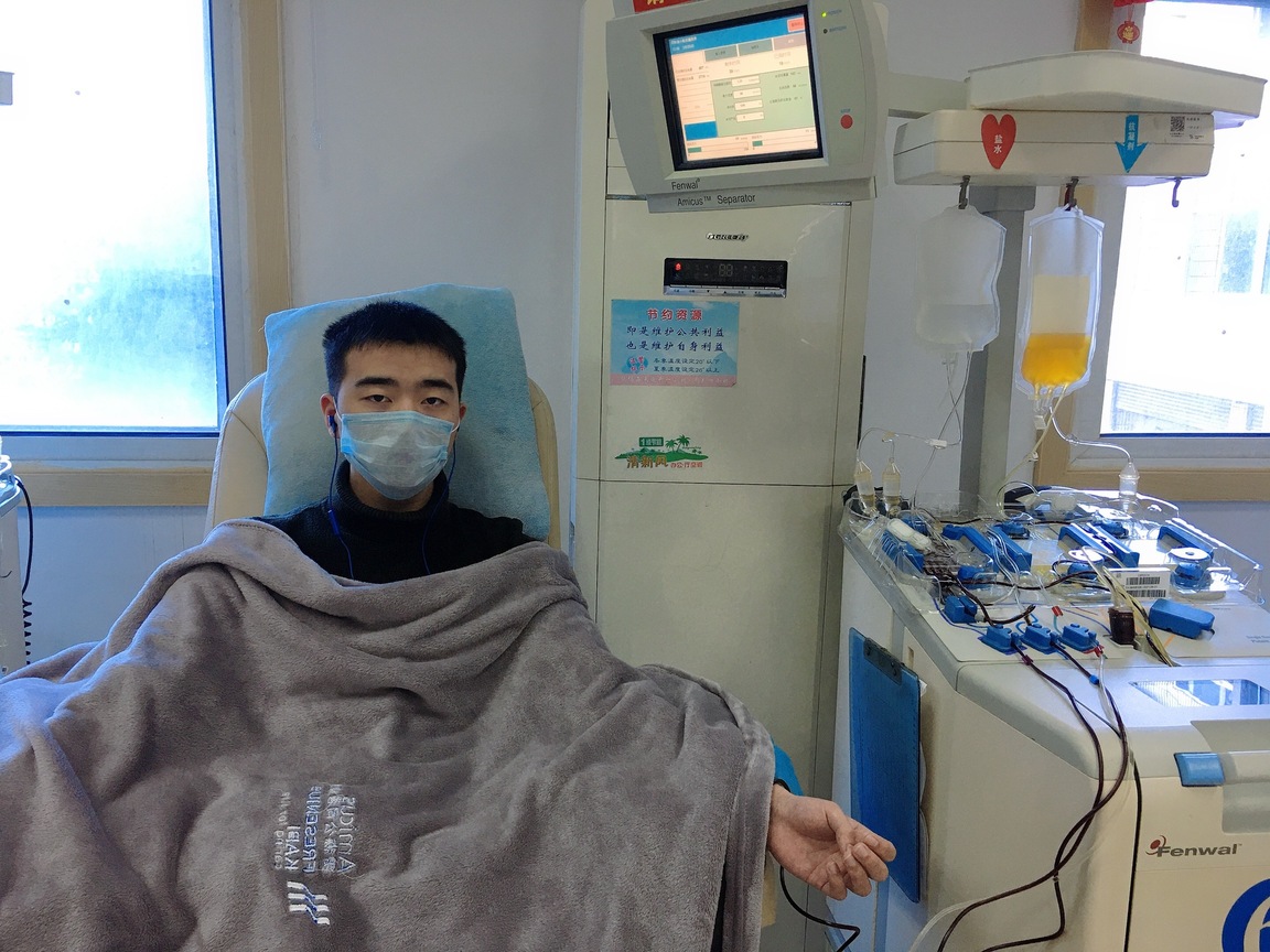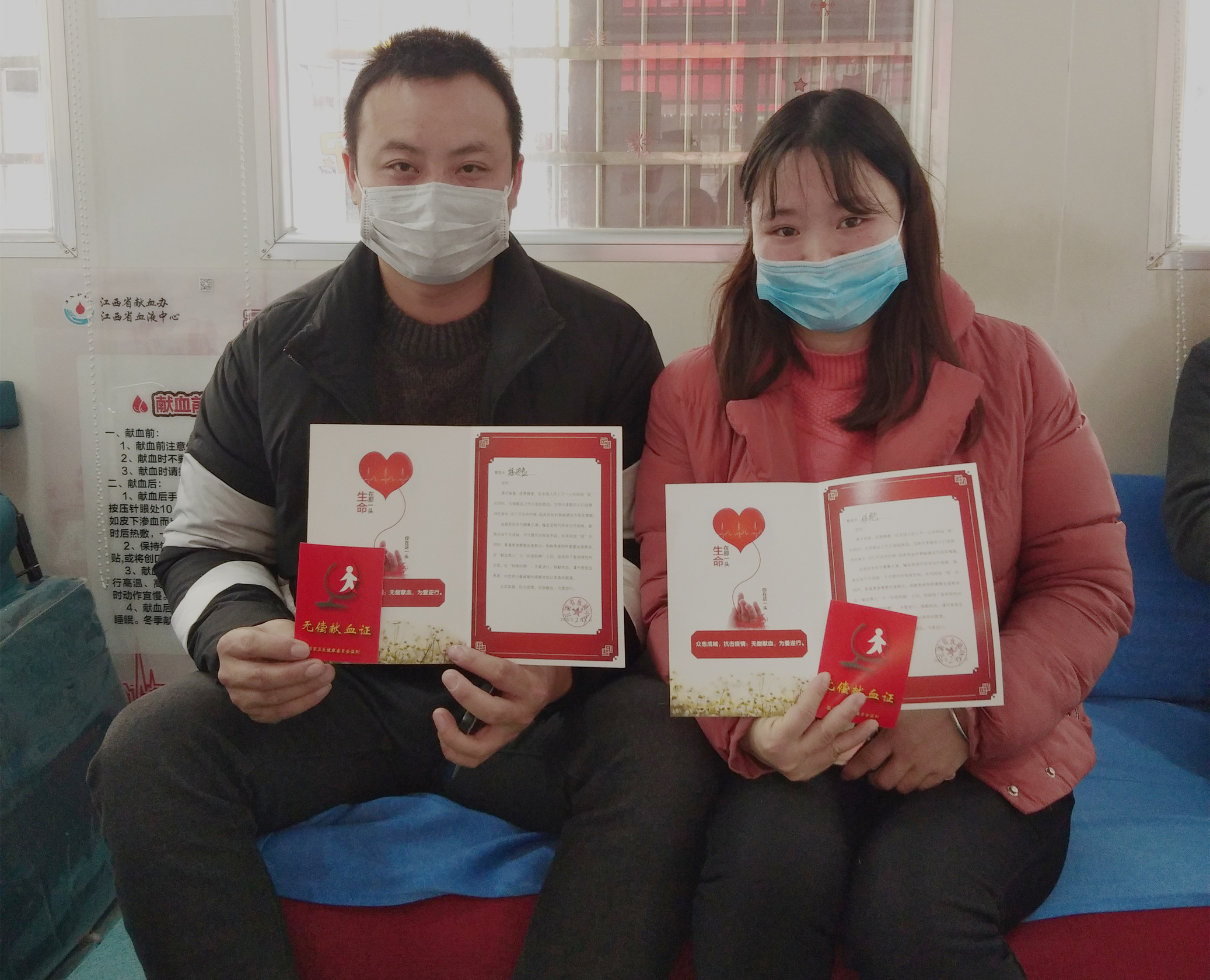 2月7日,多次献血的徐进金带妻子陈艳首次献血。