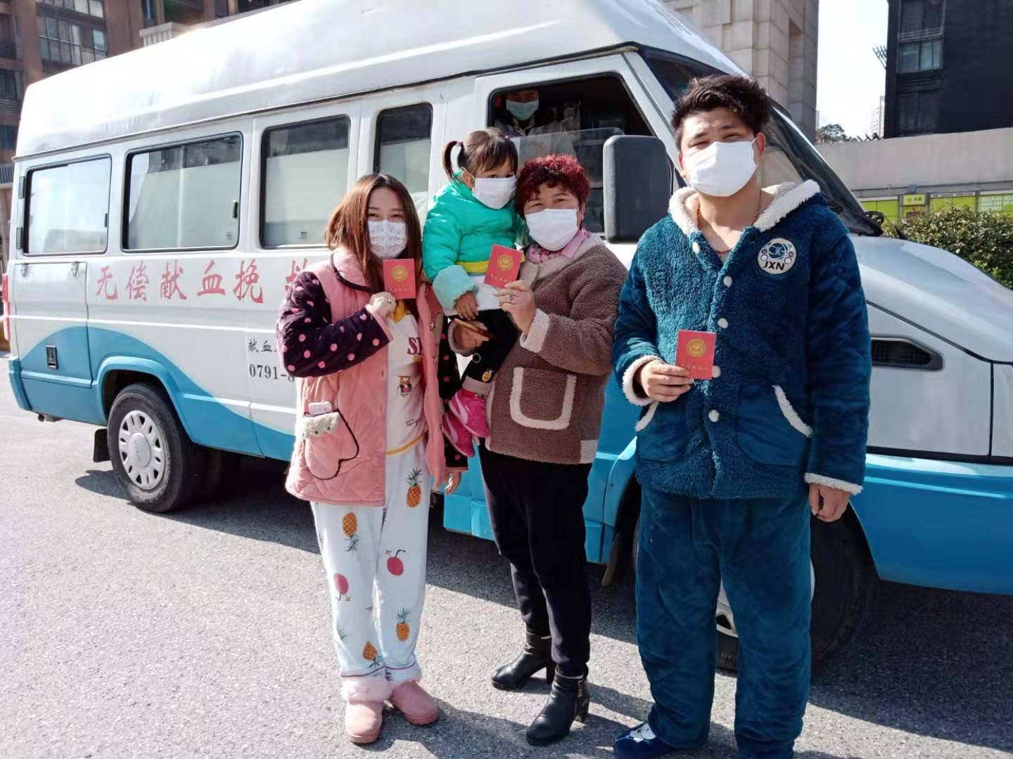 省血液中心献血车来到西湖区,上门为张婷一家人采血,张婷与母亲、丈夫均成功献血,累计献血量1000毫升。