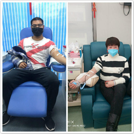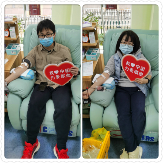 这两位是成分科职工方颖和献血服务一科职工朱戴伊,他们是一对夫妻。他俩在休息日一起前往柳汀街献血屋,分别献血300毫升。