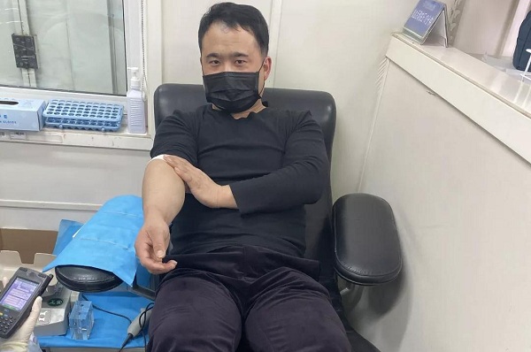 中心员工家属积极助力献血,体采科杜丹的哥哥杜力,作为一名共产党员,在这个特殊的时期参加无偿献血,体现了为国为民,勇于奉献的精神品质。