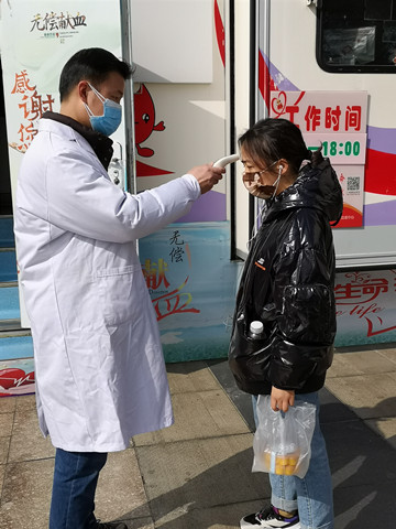为缓解当前无偿献血困境,中心党员迅速行动、主动服务、毫不退缩,毅然走上街头,走上献血车,为献血者测量体温,进行健康征询,维持秩序。确保体检化验、血液采集、休息区域人员比例为1:1:1,为采血一线工作人员和献血者提供安全可靠的献血环境。
