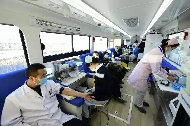 为了避免聚集,大家在做好自身防护同时分时段献血,每时段不超过8人,现场秩序井然,院党委书记祁国荣第一个走上献血车。