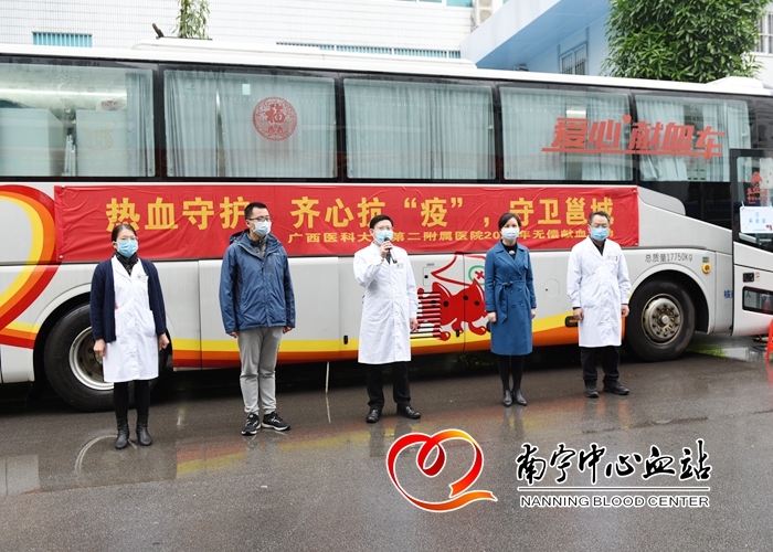 广西医科大学第二附属医院院长罗杰峰说:“除了疫情防控,日常医疗工作照样进行,所以还有大量的危重病人甚至一些外伤或其他病人需要用到血。在非常时期我们的医务人员必须拿出责任和担当”。自从我区启动重大突发公共卫生事件1级响应以来,居民减少外出,企业、学校延期开工开学,南宁市献血人数急剧减少。为此,南宁中心血站医务人员在率先组织献血的同时倡议社会各单位团体积极献血,广西医科大学第二附属医院第一时间响应号召并组织开展献血活动,成为第一个响应、开展团体献血的驻邕区直单位。
