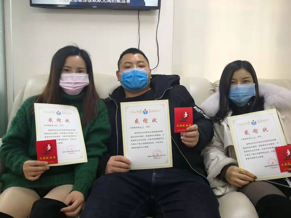 当天,三人分别捐献了400毫升爱心血液,血站工作人员还为他们颁发了感谢状。据了解,自郴州市中心血站发布《“抗疫情 保供血”爱心献血倡议书》以来,全市广大市民积极奉献爱心,截至目前已累计献血1800余人次。为感谢无偿献血者的无私奉献,血站近日特别制作了感谢状予以表彰鼓励。