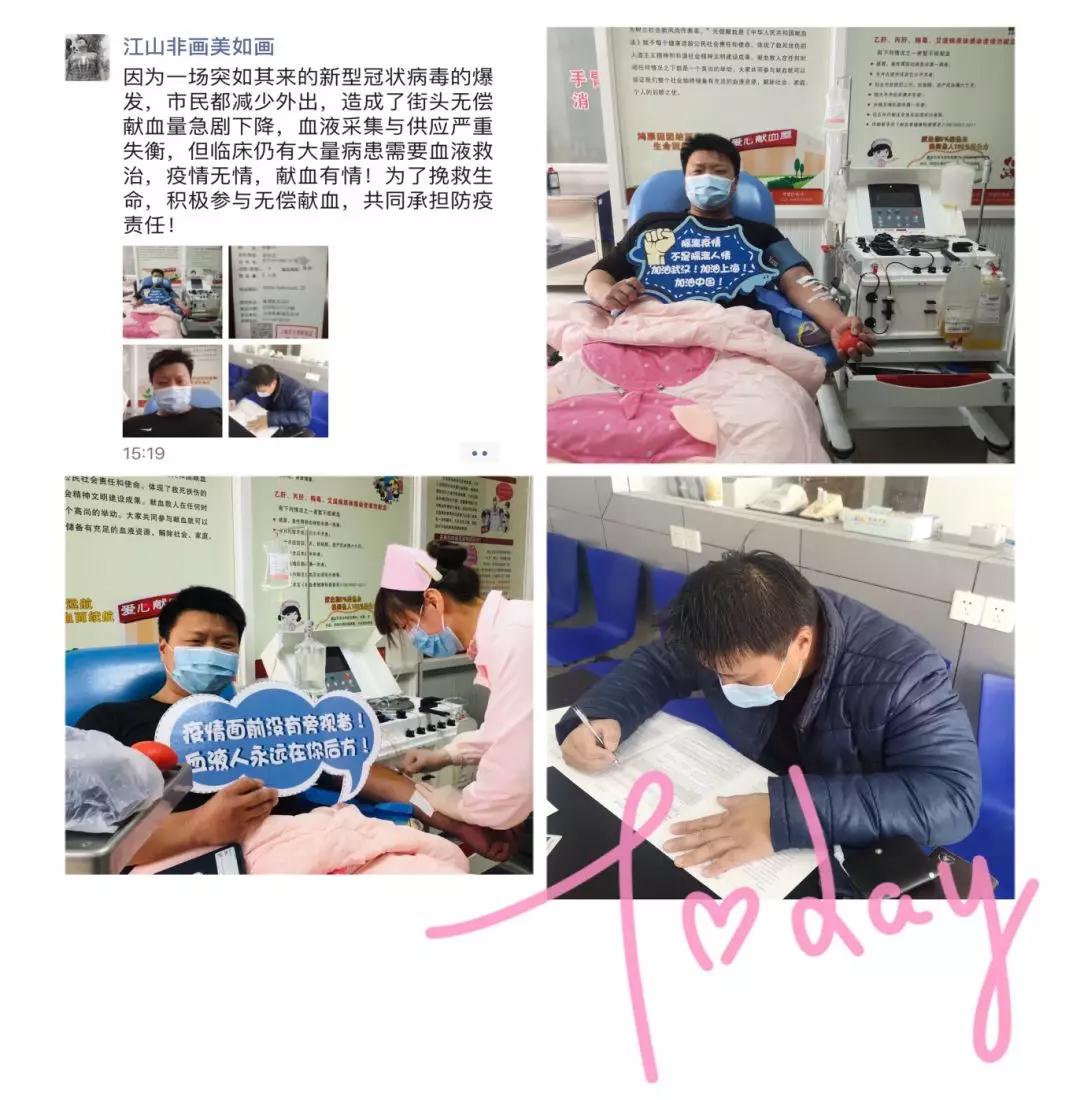 出生于1985年的苏蔚华是青浦区盈浦街道派出所的一位民警,也是土生土长的上海人。苏蔚华2005年开始无偿献血,累计捐献全血8次2000ml。本周原本没有预约上血小板采集的他,还是“偷偷地”找到团队人员,如果有无偿献血者不能来,第一时间让他顶替上。下午15:19分苏蔚华在朋友圈分享了第一次成分献血:“疫情无情,献血有情!为了挽救生命,积极参与无偿献血,共同承担防疫责任!”。