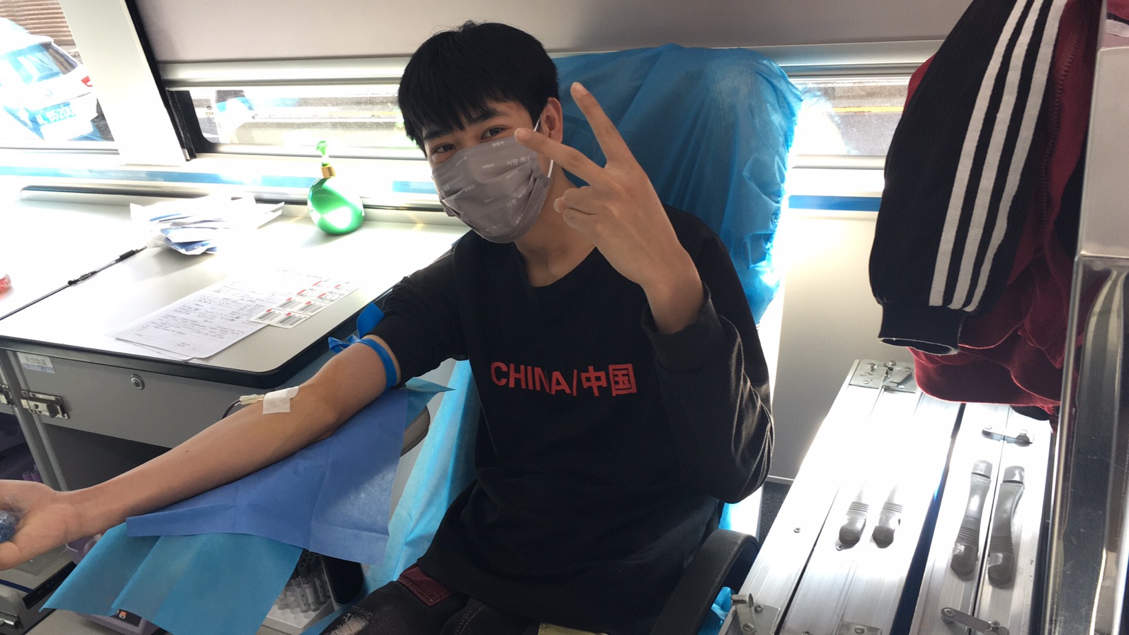 (19岁的李宝霆第一次参加无偿献血)