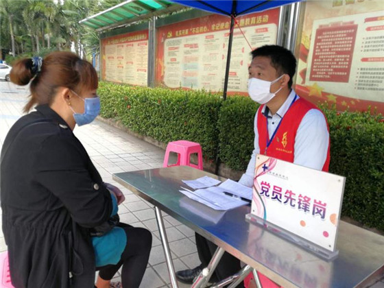 5.党员模范带头:为有效进行疫情防控,引导献血者有序献血,中心在业务大楼外设立献血者接待等候区。海口四个党支部积极组织党员勇当志愿者,为献血者提供咨询、引导服务,以实际行动响应省卫生健康委“充分发挥党组织和党员作用”的号召,党员冲在前、做在先!