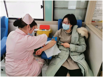 在疫情防控的关键时刻 ,我站向全体干部职工发出血站干部职工应急献血的倡议,号召各科室符合献血条件的血站人参与应急献血,缓解现阶段采供血压力。1月28日,我站站长助理付萍萍带头参加献血。