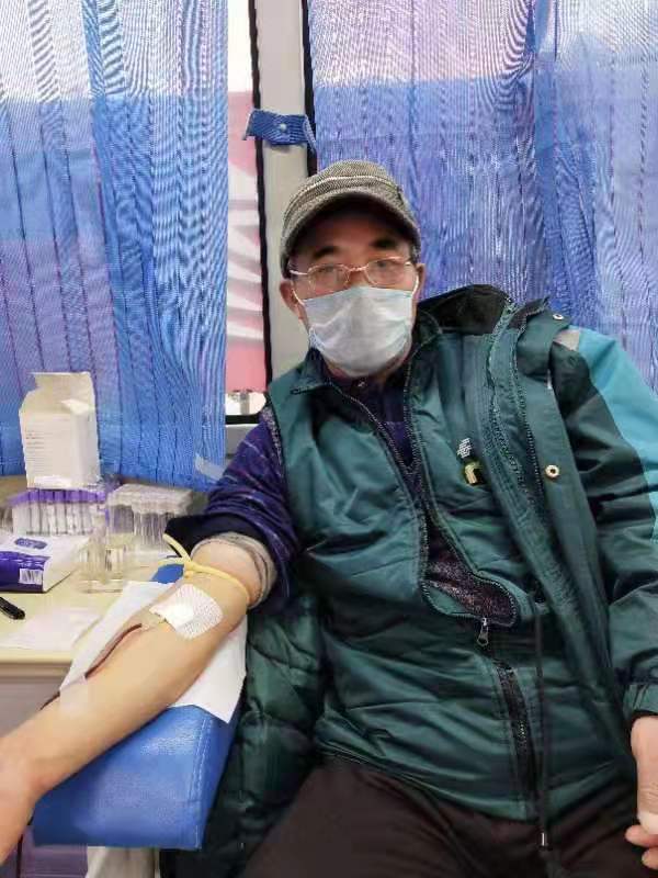 2月11日上午八点多,献血车迎来第一位献血者乐晓怀,他是东台采血点的常客,自2002年参加无偿献血以来已累计捐献全血6500毫升,血小板19个治疗量。他说:“本来血液就紧张,更何况疫情当前,作为无偿献血老队员关键时候带头献血,也算是为抗疫尽把力。”