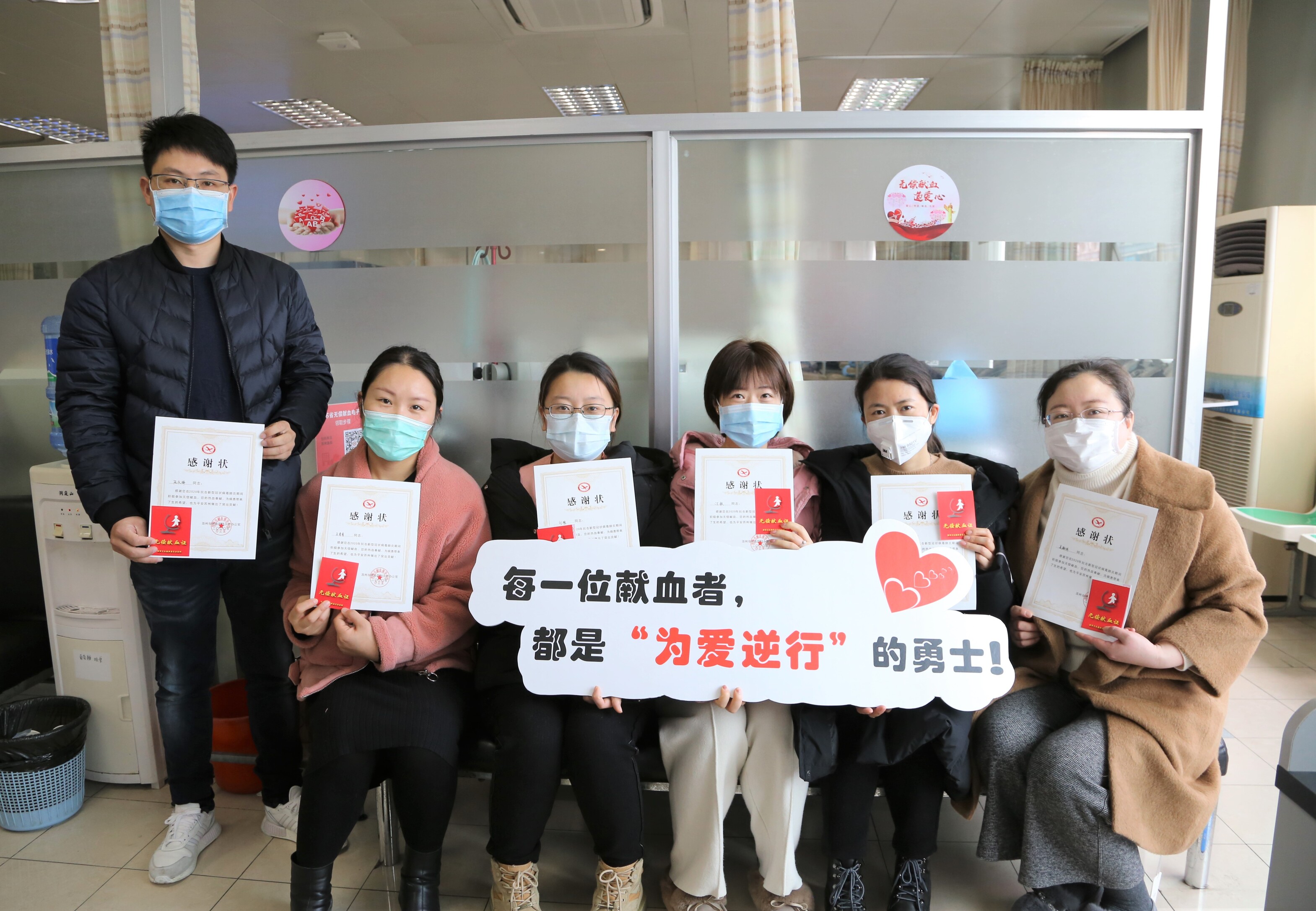 苏州大学附属儿童医院近日就组织了一次医务人员的集体献血,血液科的几位护士当天由于有工作任务没能在现场参与献血,2月12日一大早,在护士长韩丽鲜的带领下,刘暄、王青青、汪敏、吴朝娟四位护士来到市中心血站登记献血,一同前来的还有王青青的爱人。