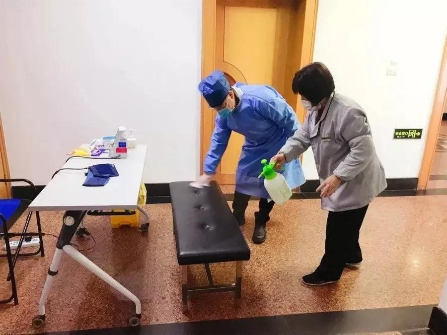 为保护无偿献血者的健康与安全,嘉定区血站加大无偿献血现场环境消毒和人员防护力度,工作前、后对物体表面、地面等区域使用含氯消毒液消毒;佩戴医用口罩、护目镜、手套、工作帽和隔离衣,接待每位无偿献血者前后实施手卫生消毒。