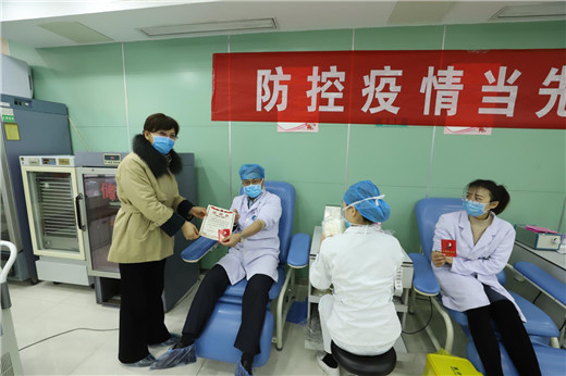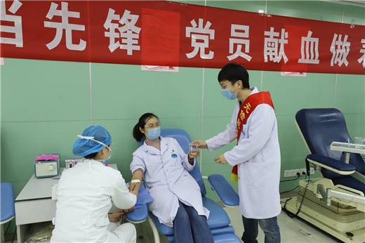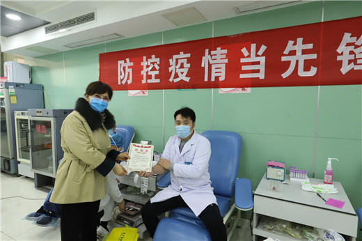 13日献血当天,党员、部分青年职工及无偿献血志愿者按照疫情防控要求,佩戴口罩,保持间距,分批有序捐献血液。市中心血站毕星秀站长前往献血屋,为党员加油,并亲自为参与无偿献血的党员、青年职工及志愿者颁发感谢状。毕站长表示,面对新型冠状病毒感染的肺炎疫情,在全面做好疫情防控工作,有效遏制疫情扩散蔓延趋势的同时,为保障全市急、危重患者的医疗用血,我们积极应对、全力以赴、绝不退缩。不忘初心,牢记使命,全力保障全市人民群众安全健康。毕主任的一番话,鼓舞着在场的每一位党员和志愿者。