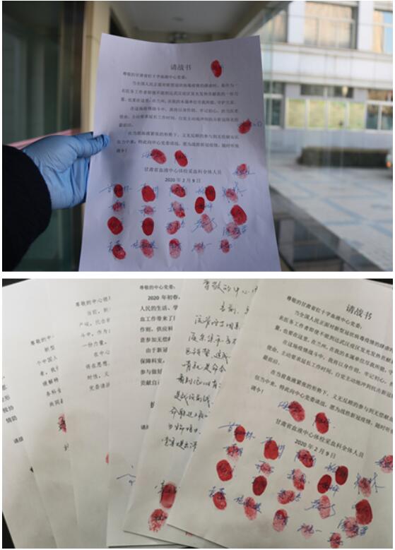 中心职工为战胜疫情、要求献血的请战书