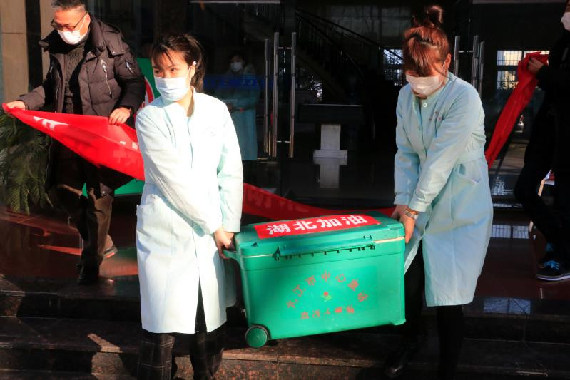 2020年2月17日,九江市中心血站紧急支援湖北抗击疫情的第一批25000毫升红细胞悬液经过严格的冷藏包装后送往南昌,由江西省血液中心统一组织,送往湖北。