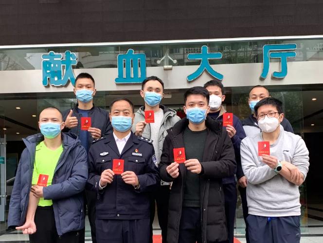 2月18日,四川省公安厅党委委员、副厅长袁刚带领7位警察一起来献血,其中一位警察是在去年8月15日和袁刚厅长一起来献血的。