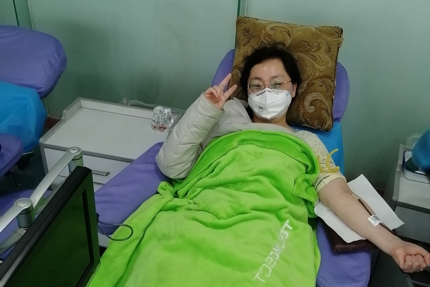 下午2点半左右,王丽波的招募又得到了另一位AB型Rh阴性献血者郭福宝的响应。一个小时后,他成功捐献血液400毫升。