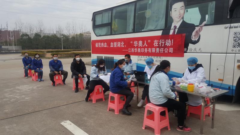 在疫情防控的关键期,江西华澳印务有限责任公司组织爱心献血活动,大家捐献的血液弥足珍贵,为支援保障湖北省临床用血安全、缓解血液库存紧张做出了积极贡献,也传递了共同抗疫的社会正能量。
