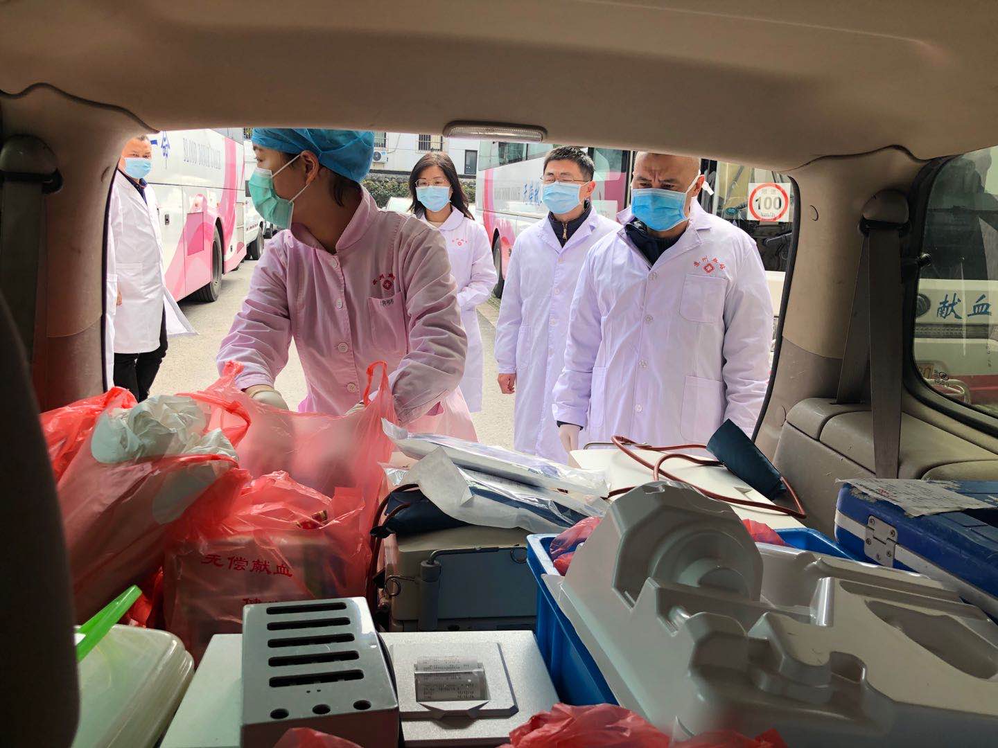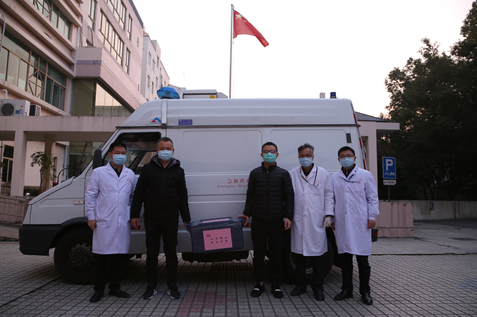 所有工作人员做好防护、准备好物资,由王明元副站长带队,前往市第五人民医院进行血浆采集。