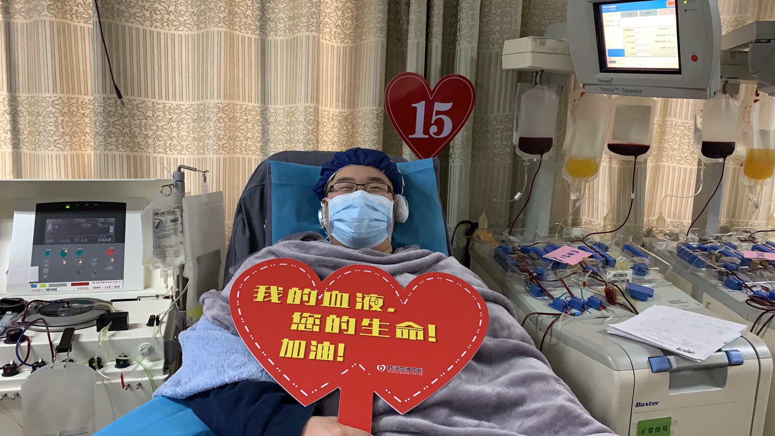 1月27日,正好是孙正的32岁生日,得知O型血小板紧缺,孙正立马联系社区,正好有一辆车空出来,孙正便立马赶往武汉血液中心,捐献了2个治疗量的血小板:“虽然没有蛋糕,但是帮助病人的生日更有意义!”