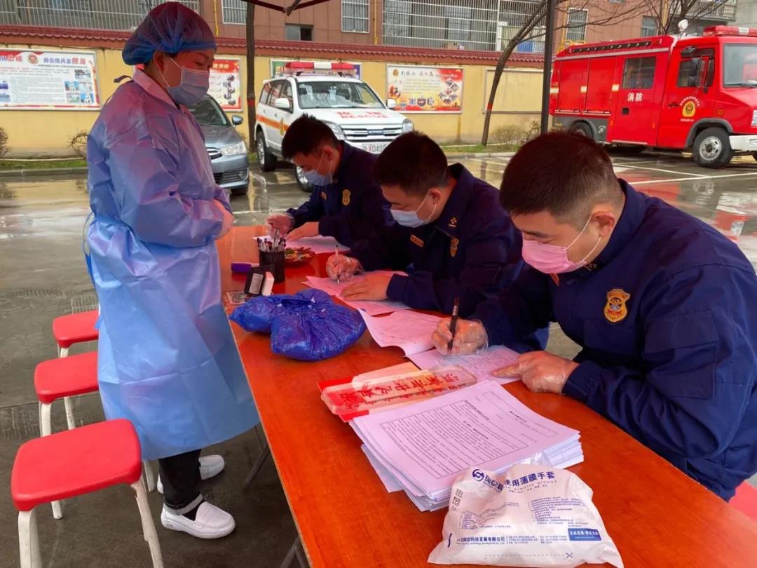 指战员们主动配合医务工作者做好填表、验血、采血工作,对医务人员疫情期间做出的贡献表示崇高的敬意。