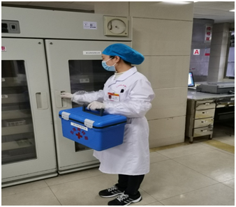 每一份血浆采集结束,成分室的薛刚就会第一个到达采血室的门口,接过采血护士认真消过毒的送血箱,小心快速地拿到成分室进行进一步的病毒灭活。在成分室,单泓科长已经早早地等候在那里。她深知一袋血就是一个生命,对病毒灭活的过程必须严格把控,所以她每次都亲自上阵,确保病毒灭活过程万无一失。