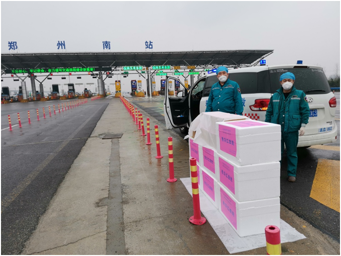 按照河南省卫生健康委统一部署,2月27日,紧急支援武汉的12万毫升红细胞、100个治疗量单采血小板,在机场高速郑州南站顺利交付给武汉血液中心派出的专用送血车。这是继1月22日首批支援武汉临床供血后,我省第五批次驰援武汉临床用血,为武汉抗击疫情提供了有力的血液安全保障。
