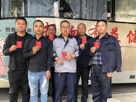 原来他们六人都是高科环保科技有限公司的司机,平时往返于省内运送危险化学品。上午忙完后,每隔半年就献血一次,已经累计献血2000毫升的土凯想来献血,没想到跟同事们说了后,大家都要一起来献血,也想在疫情防控的特殊时期,用自己的热血为防控疫情助力。