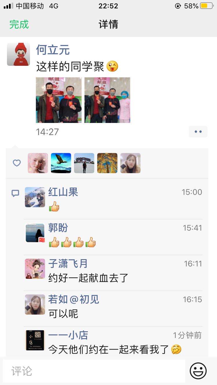 小学同学何力元给我打电话问道: “你在单位吗?我和几个同学想去献血,需不需要准备什么?”我回答说:在单位呢,你们来的时候要把身份证带上就可以,我并给他讲解了献血前后的注意事项。”中午12点左右,何立元、马建明、刘涛三位同学来到了昌吉州中心血站,我终于见到了许久未见的老同学。原来老同学们都是看到了我在朋友圈转发的《昌吉州中心血站血液告急,期待爱心市民加入》的消息后相约来献血,他们要在疫情期间为需要输血的患者奉献出自己的一份力量。