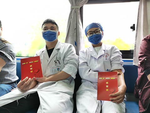 在献血人群中,我们的“白衣战士”特别抢眼。他们表示:“作为医护人员更知道失血患者及时输血的救命意义,疫情下,希望更多的患者能够及时得到救治,不能因为血液告急耽搁他们的治疗。”