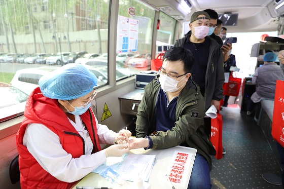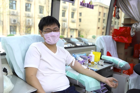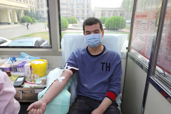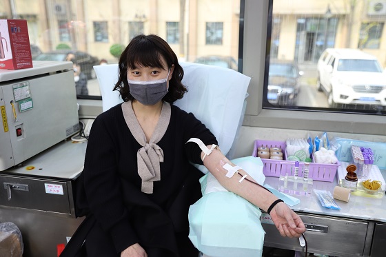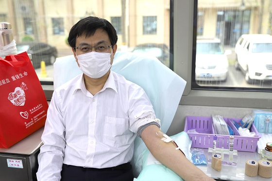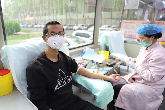 人教处主任科员刘占虎是当天的第一位献血者,也是一位“老献血者”了。说起自己的献血经历,刘占虎感触良多:“08年汶川地震那会儿我上大三,看见那么多伤员需要输血,就跑到献血屋想献个血,结果AB型血已经采满了,很遗憾没有献成。后来2010年玉树地震,我又跑去献血,这次终于成功了。此后只要有机会,我就会去献血。今年我们国家遭遇疫情,听说疫情期间采血困难,我又坐不住了,正好单位要组织献血活动,于是第一时间就报了名。”不单自己坚持献血,刘占虎还积极发动身边的亲戚朋友参加献血,“我父母都是60后,在我的影响和带动下,也都参加过献血。”当被问到如此热心于献血事业的原因时,刘占虎回答道:“我认为献血这件事不论是对社会还是对个人,都是一件好事。对社会做点贡献,对自己身体也有好处,何乐而不为?以后只要身体状况允许,我会一直坚持献血,直到不能献为止。”