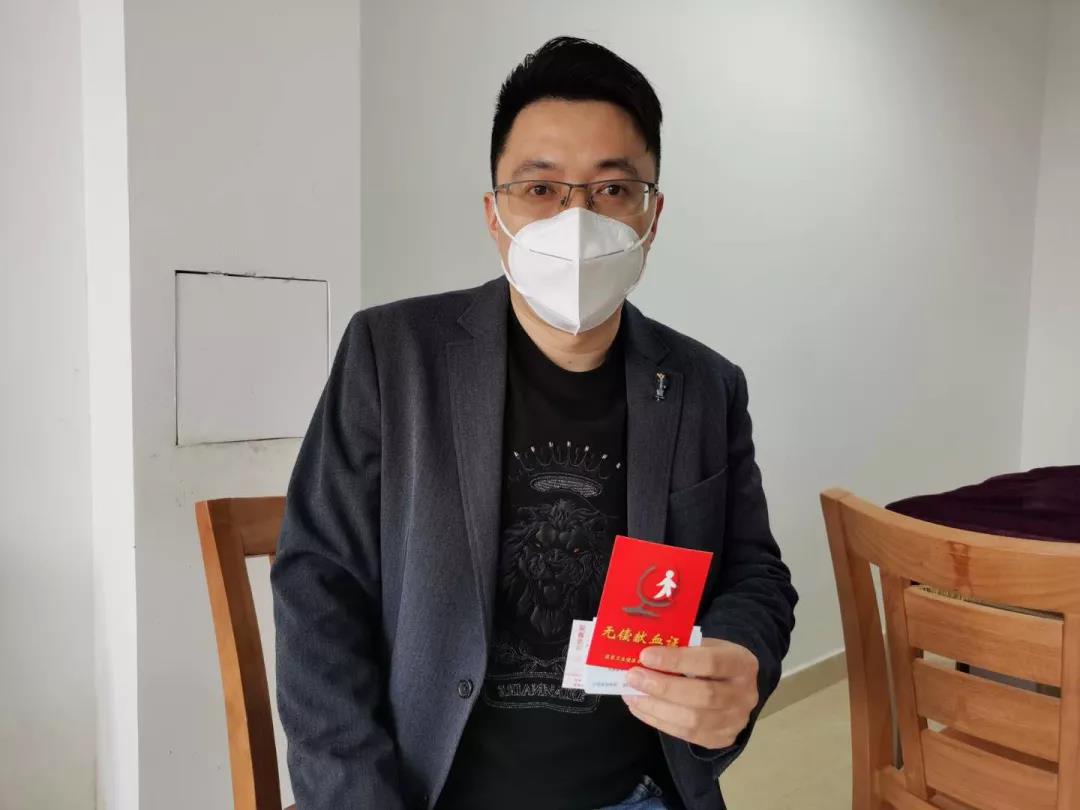 陈金良,贺泓上海金属制品有限公司负责人。会晕针的他每次去医院输液都要纠结很久,但对于此次无偿献血他丝毫没有犹豫,为了能够成功无偿献血已坚持三个星期戒酒和清淡饮食了。他说:“这次新冠肺炎疫情肆虐,医院肯定缺血,所以就特地赶过来献血了。”此次他成功无偿献血400ml,累计无偿献血1000ml。