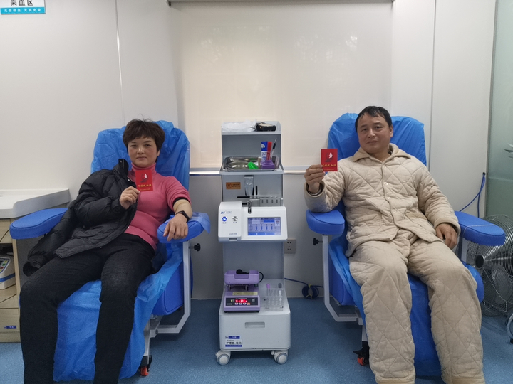 (无偿献血者曹正梅和丈夫李联强参加献血)