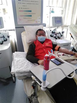 盐城市东台邮政局的周继军,当属机采血小板应急献血队“新人”,2017年参加无偿献血,起步虽晚,体格不大,却已累计捐献血小板39个单位。他总说:“能够挽救他人的生命,是一件十分有意义的事。现在全国正面临疫情考验,我们不能像医生护士们一样到疫情防控一线去,尽己所能献点血救治临床病患,也算是为防控出点力吧!”