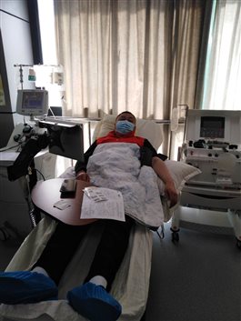 憨厚淳朴、见人一脸笑的魏巍, 2007年开始参加无偿献血,捐献血小板一年多。今天是他第一次来盐城血站,看到经过严格消毒,宽敞洁净的机采室,他笑着说:“血站和人民医院领导真好,为了避免疫情期交叉感染,保证献血安全,特意派专车接我们来血站献血,没有了出行困扰,能够在更加安全、放心的环境里捐献,这样的安排很贴心。说实话,作为‘江苏省无偿献血三免证’持有者,我很自豪,公交地铁免费乘,公园景点免费逛,这是政府对我们爱心的充分肯定,只要身体允许,我会一直坚持下去。”