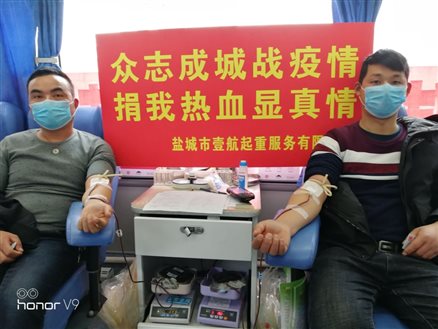 自疫情发生以来,献血者锐减。“疫情严重,血液告急”盐城市壹航起重有限公司自发组织员工到射阳采血车献血。短短2个小时就有20多人献血成功,累计献血达上万毫升。