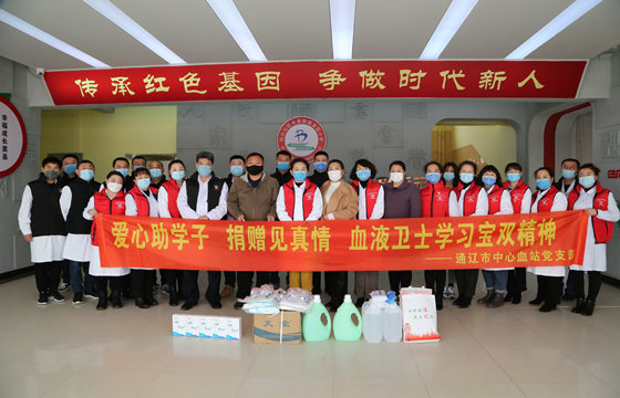 近日,得知木里图镇宝双小学开学之际防疫物资短缺的消息后,通辽市中心血站党支部和妇委会从关爱儿童角度出发,决定向这所因抢救北京学童牺牲的务工青年刘宝双而命名的小学捐赠防疫物资,并到刘宝双纪念馆参观学习,开展主题党日活动。