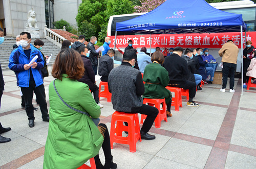 3月30日上午,兴山县政府大楼门前,来自县直机关单位的职工们有序地排起了长队,大家整齐地戴着口罩,保持好安全距离,有序地进行体温测量、填表、体检、化验、采血。这是宜昌复工复产后,第一个组织献血的直机关单位。