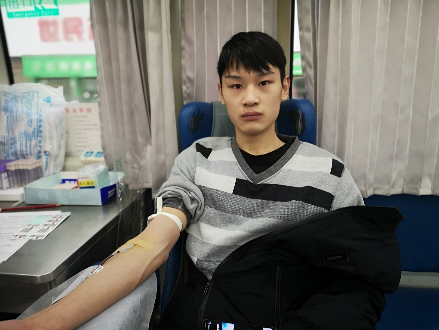 黄彩平也是第一次献血。原本紧张严肃的他在和医护人员聊天后,终于露出了笑容,隔着口罩也能感受到他的轻松。他说原来献血一点也不可怕。