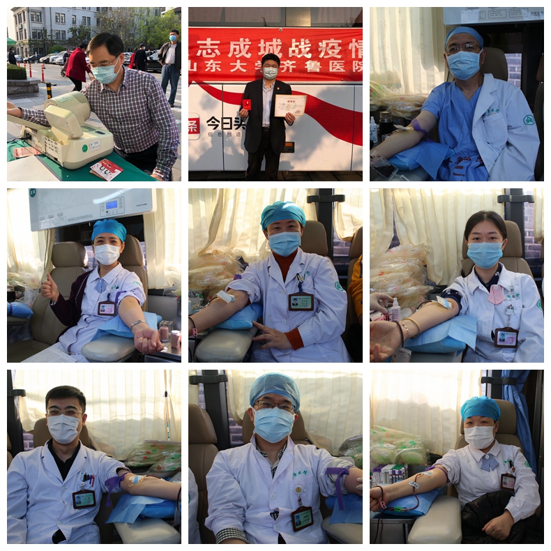 生死召唤,须臾不待,值此疫情,责无旁贷!这便是白衣天使的情怀和使命。新型冠状病毒感染肺炎疫情,山东大学齐鲁医院相继派出4批援鄂医疗队驰援湖北一线战场,白衣战士们舍小家顾大家,为医院赢得了荣誉,为打赢这场没有硝烟的人民战争付出了巨大努力,彰显了齐鲁大爱精神。守望相助、共克时艰,在血液紧张的关键时刻,山东大学齐鲁医院面向全院发起无偿献血倡议,全院干部职工积极响应、踊跃报名。