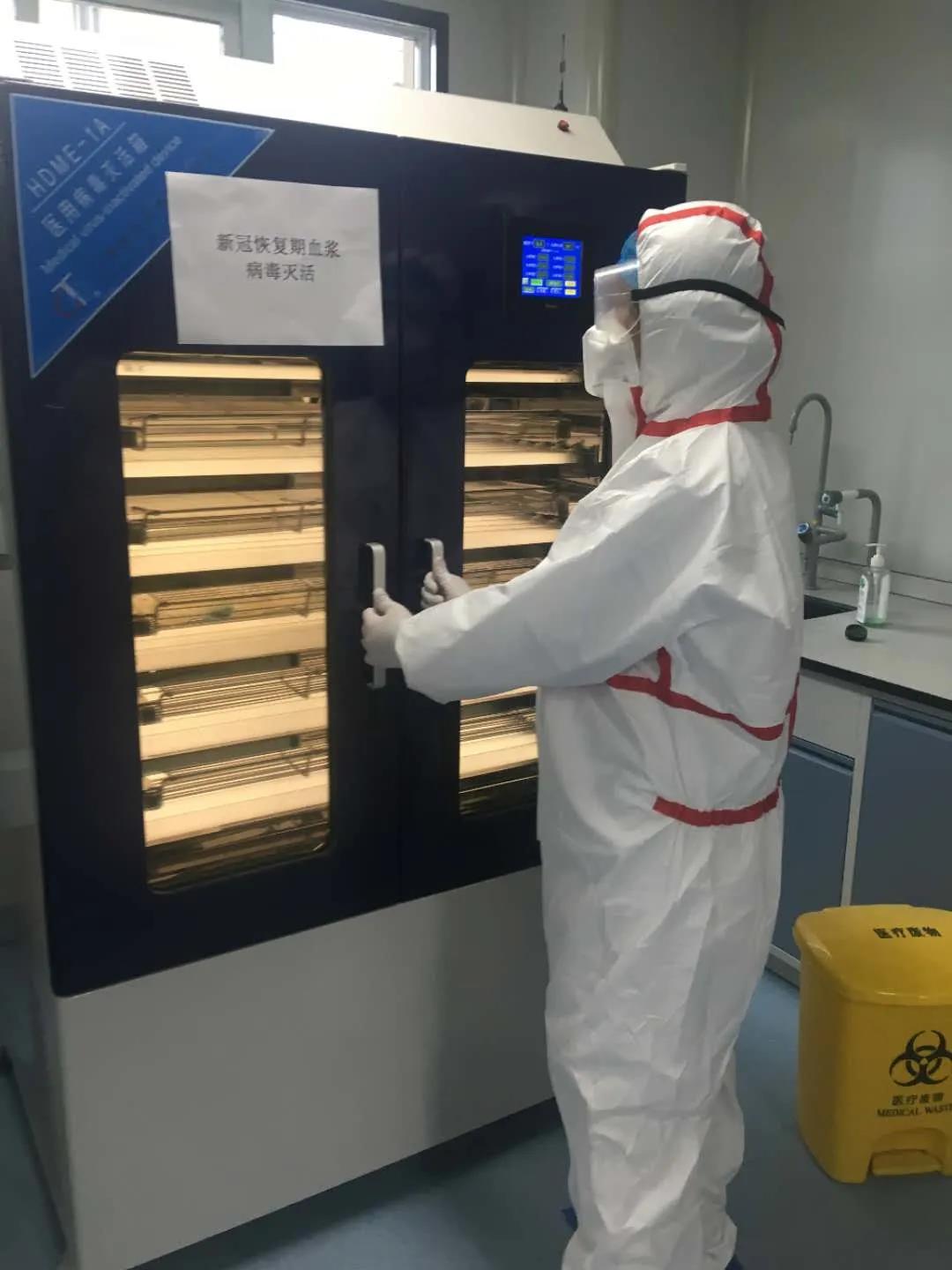 同时,我很荣幸参与了新冠肺炎康复者血浆的制备,还记得第一次安排我和刘老师一起新冠康复者的血浆进行病毒灭活,心里特别紧张,当天下午五点半,成功采集到1200ml新冠恢复期血浆,我们按照提前培训的顺序一步步进行操作,我们穿着隔离服还不到30分钟时间,护目镜已经雾气蒙蒙,头发,衣服已经湿透,这样不免想起那些奋战在疫情一线的医务工作者真的很不容易,而一线的医务工作者他们一穿就是好多个小时。从我们开始制备到制备结束用时大概1个多小时,这一个小时真的很漫长,我感觉就像过了一天那么漫长,同时我体会到了现在的幸福安康的生活都是有人替我们负重前行。