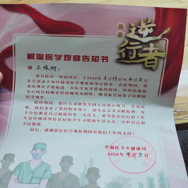 解除医学观察告知书