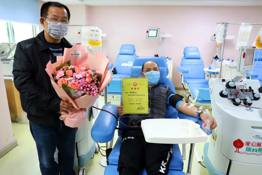 人间有爱,生活就美好,社会才会更温暖。自2018年起,凡捐献机采血小板第50次、第100次、第150次、第200次等等献血者,血站都会为他们送上感谢状和鲜花,谢谢他们长期以来坚持与付出,奉献是最温情的告白,无偿献血的这条道路上,感谢有人陪着一路同行。